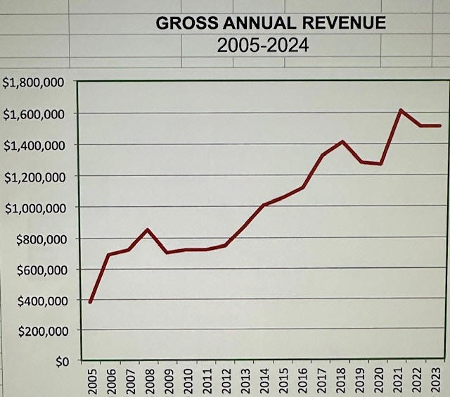 Figures taken from monthly Washington State Sales Tax Returns/Federal Tax Returns